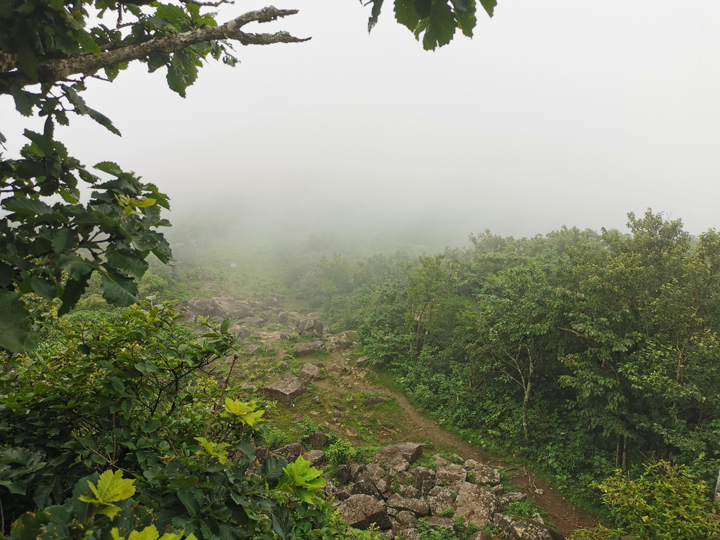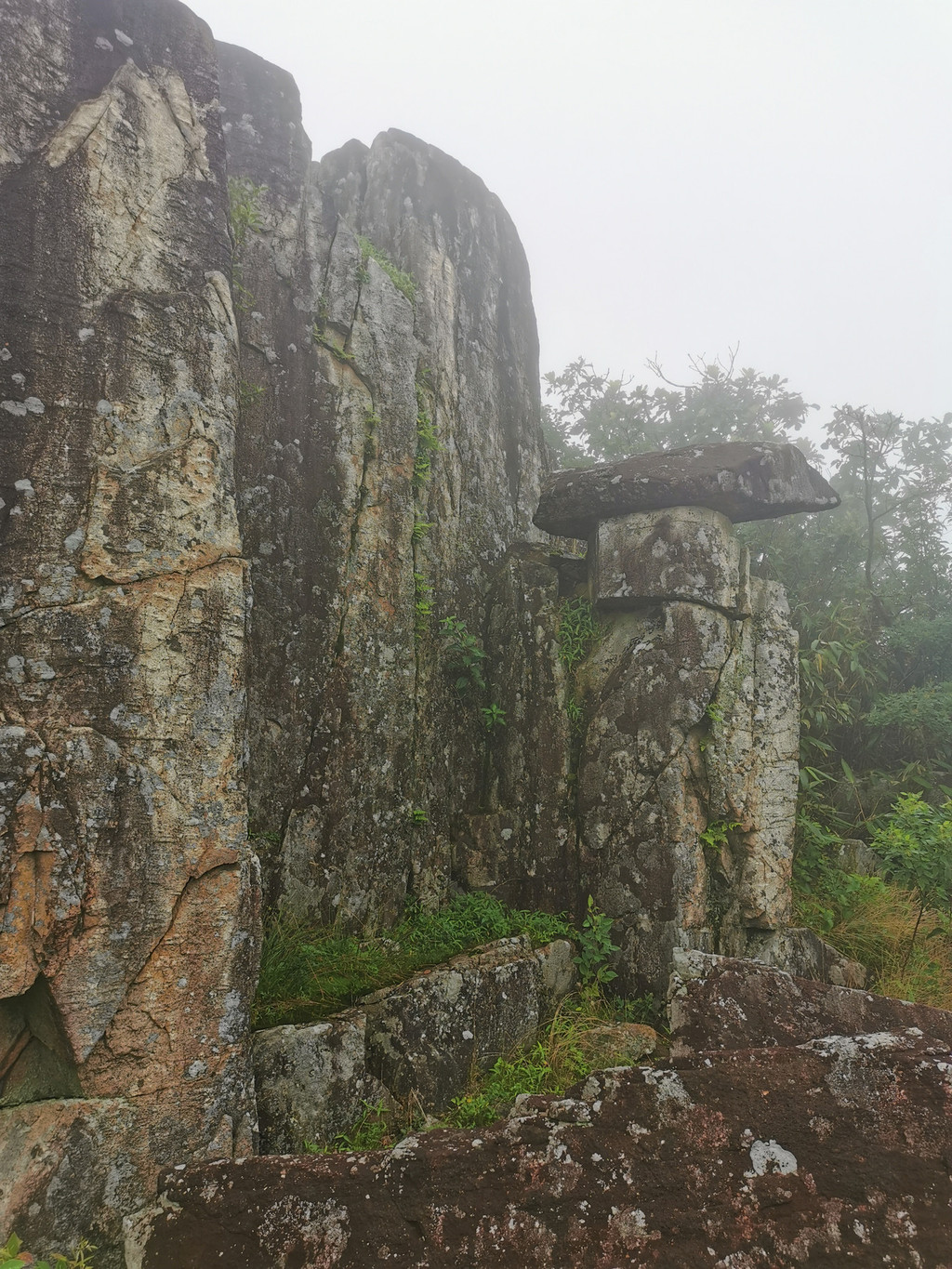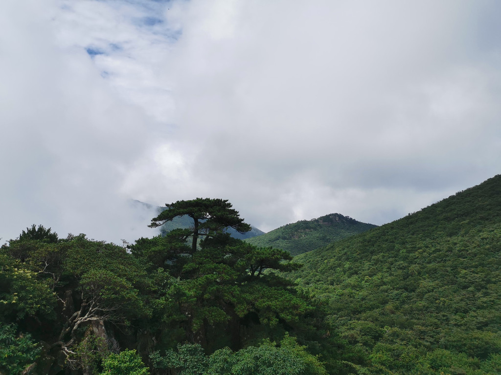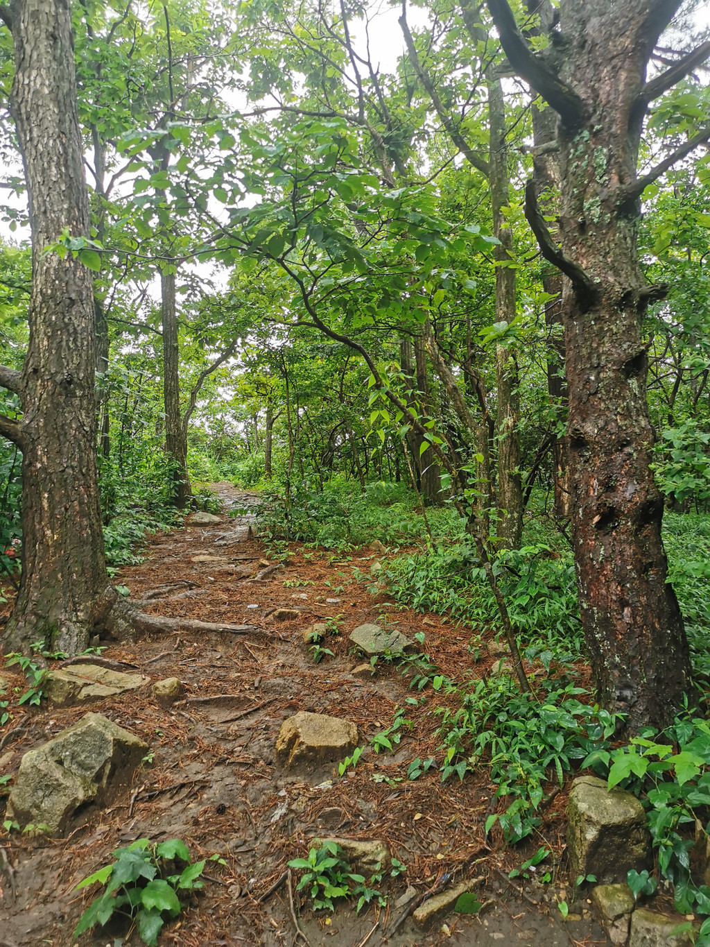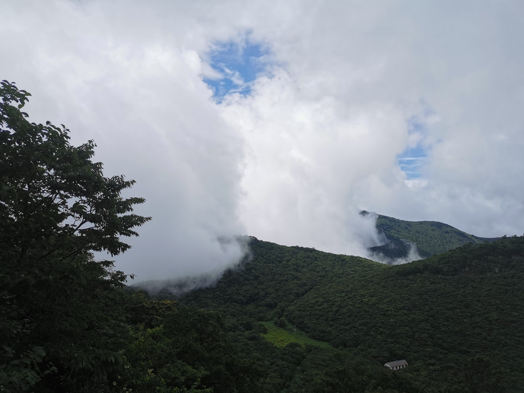 临安区大地之野之前去龙王山的线路上到山脊线三叉路,左手龙王山方向,右转往药王峰。天气预报小雨,还好是阵雨小雨,山脊线上药王峰刚开始一段下雨,后边多还好;山道好几处上下只有能够踩一只脚的,千亩田后面下雨泥石路很容易打滑,以后是尽量不在雨天上山。可或许也正是下雨,雨歇后山顶云雾散开去,站在山巅感受着山野间清风拂过,放眼望去,只余下青天、白云、远山、空谷、鸟鸣…
