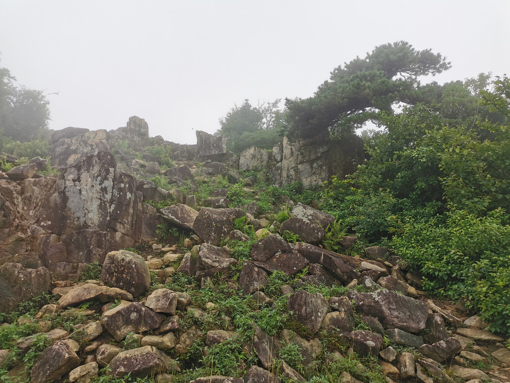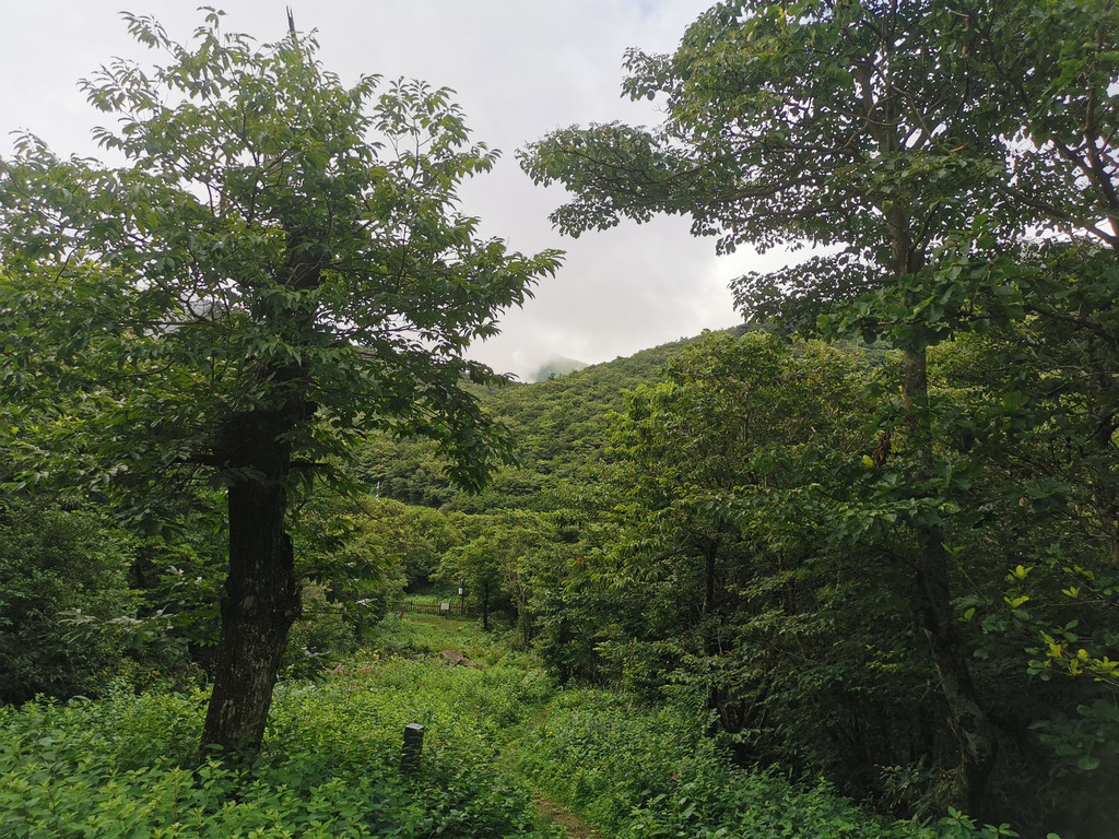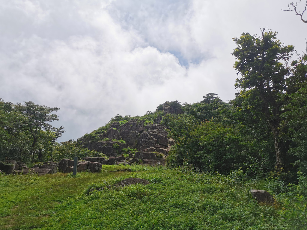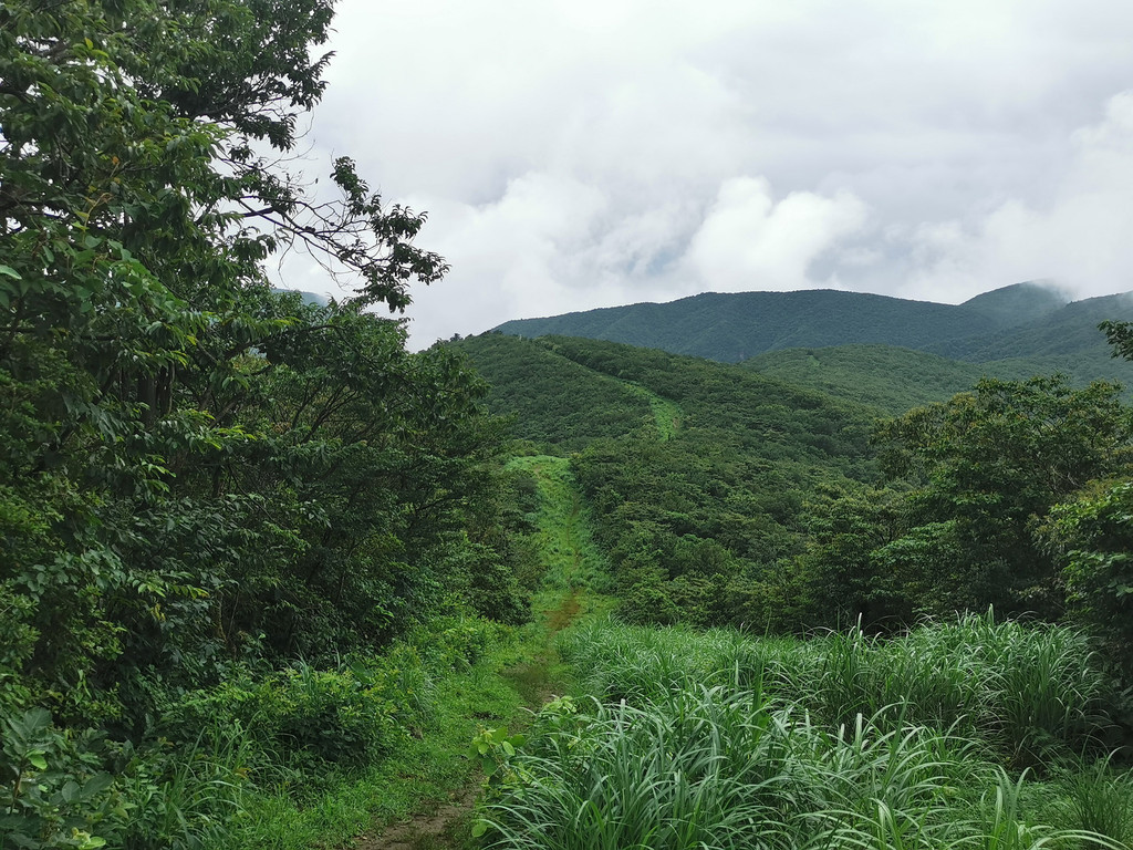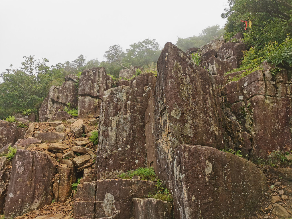 临安区大地之野之前去龙王山的线路上到山脊线三叉路,左手龙王山方向,右转往药王峰。天气预报小雨,还好是阵雨小雨,山脊线上药王峰刚开始一段下雨,后边多还好;山道好几处上下只有能够踩一只脚的,千亩田后面下雨泥石路很容易打滑,以后是尽量不在雨天上山。可或许也正是下雨,雨歇后山顶云雾散开去,站在山巅感受着山野间清风拂过,放眼望去,只余下青天、白云、远山、空谷、鸟鸣…