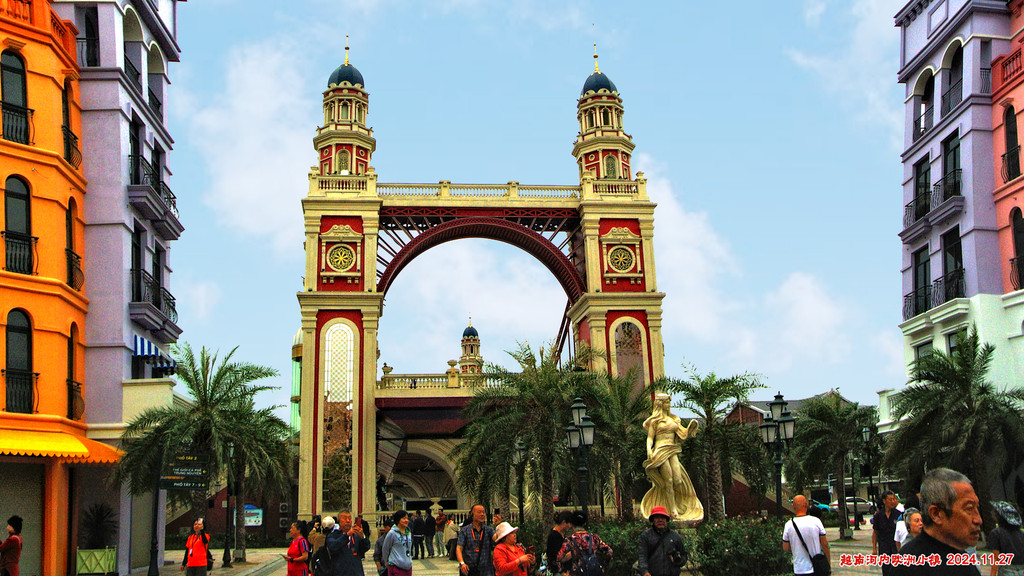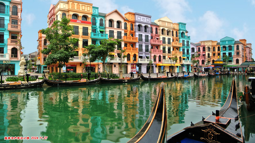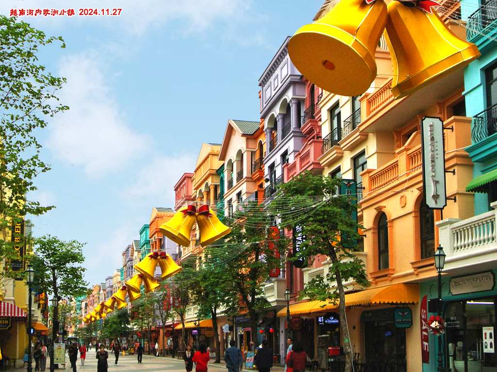 11.26日星期六,游完下龙湾后,乘大巴前往河内,途经欧洲小镇(☆河边一堆五颜六色的欧式建筑)。夜宿河内。