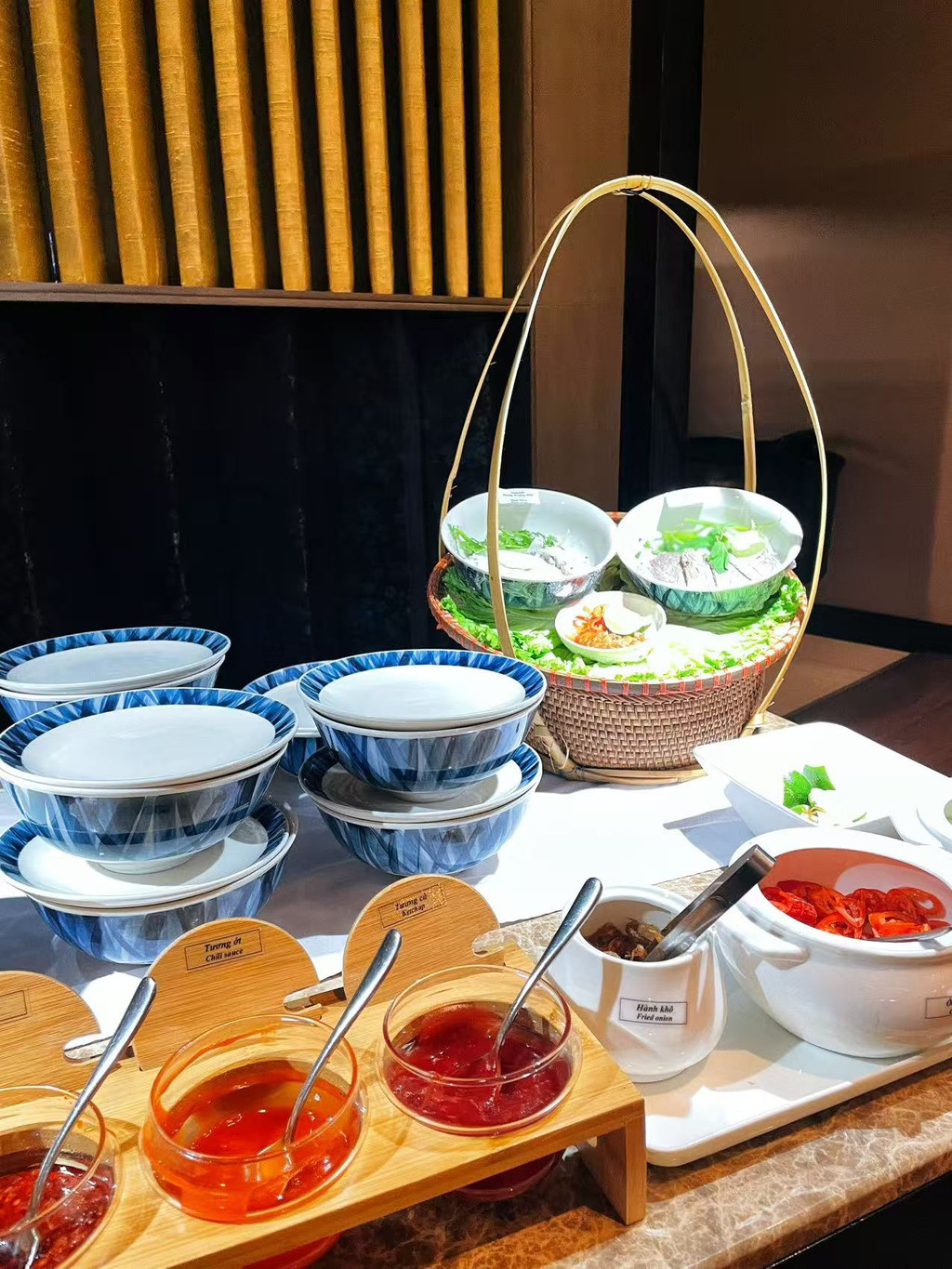 这是一家在河内挺出名的吃越南粉的店,主打鸡肉Pho也是很特别,门口熬着鸡汤飘香,路过都会被香气吸引而停留,进门看见挂着一排大个头的白切鸡,店员各种忙碌手撕鸡、斩鸡,确实食欲拉满,坐下来看到陆续有当地人进来用餐,心里知道没有选错地方,吃越南粉一定先喝一口汤,老广深知清汤要做到清而不淡实属不易,越南粉汤底就是有魅力让一个老广把汤喝完,加入青柠与粉一起吃,既能将汤底再注入清新的灵魂,跟鸡肉也非常搭配,鸡肉有微微的底味,我选择没有放任何酱料,连着汤底吃,越南Pho总有一种很治愈的感觉,吃完非常舒服!这次选择店里最经典基础款,我听同行当地人说,还有越南人特别味道款,我觉得下次可以挑战一下!