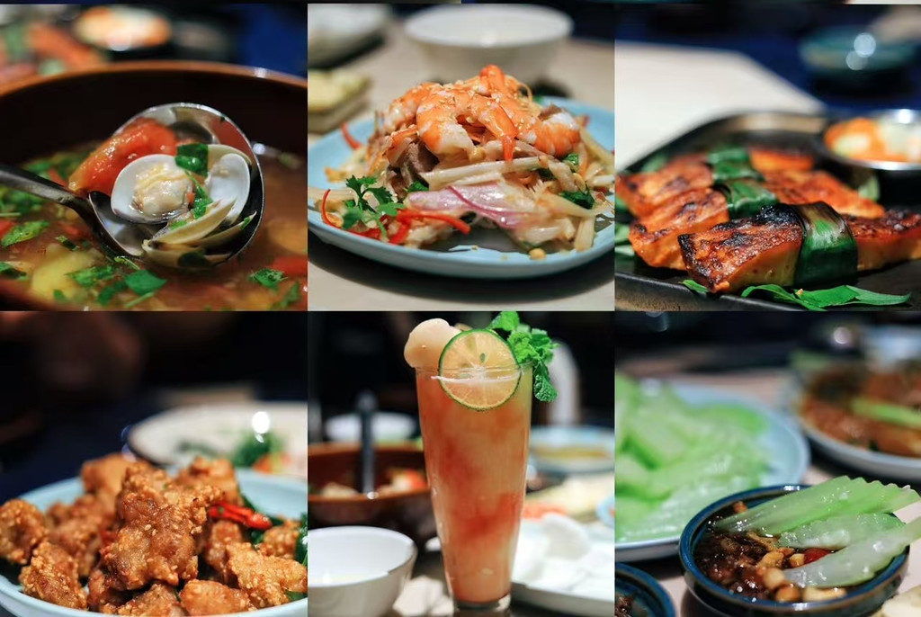 🍴在河内吃了一家让我念念不忘的餐厅,餐厅以提供传统经典越南菜为主,从装修到食品呈现,具有越南传统和现代简约的融合设计。推开传统越南风情的大木门,映入眼帘便是悬挂满竹编和丝绸越南灯笼的走廊,庭院最深处种着一颗大树,树下就是户外用餐区,整栋老宅改造还保留法式殖民建筑的影子,保留砖墙、拱门、花地砖等历史细节感。食品味道很适合中国胃,新鲜鱿鱼用椰子水煮,在海鲜的鲜甜度上增加更为独特水果清润,番茄蛤蜊汤有点像泰北冬阴功,清爽微辣的酸汤非常适合这个国度,蘸葫芦瓜的酱也是一道美味的菜,就像融入甜度的XO酱,其实是鱼肉做的肉酱,最经典的Bun Cha烤肉米粉,搭配九层塔紫苏香菜还有灵魂酱汁,随便可以干掉一大盘。这里饮品也非常不错,推荐鲜榨果汁以及时令荔枝冰。