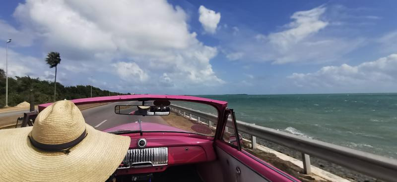巴拉德罗市区很小,有两个公园,我们也没去逛。看到那些敞篷老爷车,倒是一直心痒难耐,价格并不太贵,到酒店是二十块(古巴币),比20美元略高一点,于是回酒店就舍弃了观光大巴,坐在老爷车上,迎风飞舞,饱览风光秀色的同时,感受古董老爷车的飞驰。