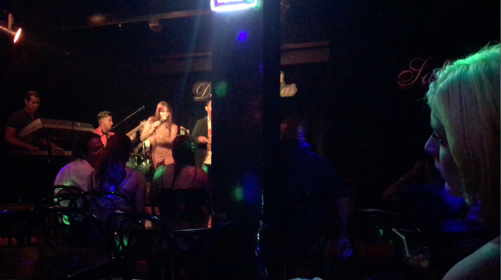 她扭动着腰肢,唱着激烈的歌曲。时不时还会拿出一把银色的长笛即兴演奏,和她身边那三位键盘吉他手们,让这狭小闭塞的简陋老空间,流动着年轻的灵魂。