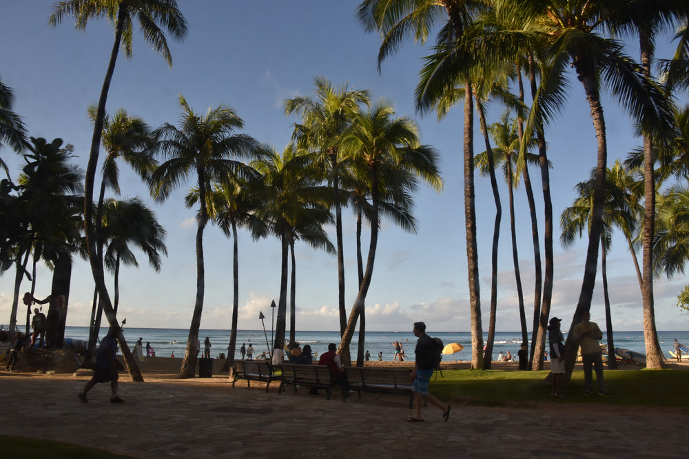 导游姓林,福建人,与以往一样,从机场到酒店的路都是做介绍的最好时机。夏威夷是美国的第50个州,由132个岛屿组成,有8个岛屿有人居住,总陆地面积为1.67万平方公里,夏威夷的欧胡岛(Oahu Island或称瓦胡岛)是夏威夷群岛中第三大的岛,陆地面积1554平方公里,也是最重要的岛,因为夏威夷州的政府所在地檀香山就在欧胡岛上,全夏威夷州80%的人口都居住在这里。说到檀香山,肯定会认为这个名字与檀香有关,确实如此,过去,说的是中国人到此地以前的过去,这里有大量的檀香树,清朝末年有欧洲人带领的中国劳工来此砍伐檀树,继而大量的中国人来此做檀香木生意,大量的砍伐造成檀树越来越少,以至于现在几乎见不到,小林继续介绍自己的实例,他家是做水产生意的,主要做海参生意,他11岁就跟随家人到各个海产丰富的岛屿,南太平洋的岛屿几乎转遍,斐济、汤加、沙巴等等,转到夏威夷有十几年了,转场的原因你懂得,中国人太能干了。
