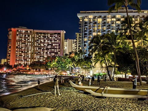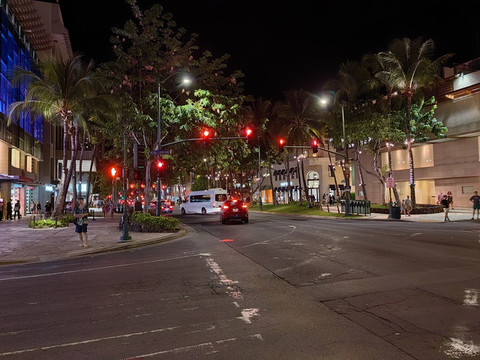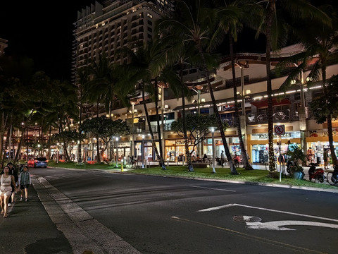 晚上,游览威基基海滩Waikiki、卡拉卡瓦大道Kalakaua Avenue等地。