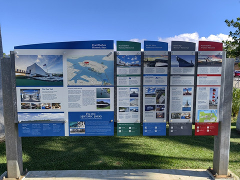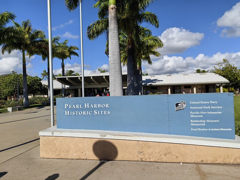 珍珠港国家纪念馆Pearl Harbor National Memorial参观区域非常大,如果详细游览,最好留一整天时间。停车场位于游客中心外,停车场不小,但参观的人多,车辆也多。纪念馆游览不收门票,但收取停车费,按照指示牌手机操作缴费,每辆车7美元。