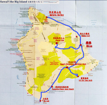 大岛:夏威夷岛是夏威夷群岛里最年轻的一个岛,也是最大的岛,岛上有五座火山,不断爆发的活火山仍在继续为夏威夷岛增添新的土地。为避免与州名混淆,夏威夷岛被称为“大岛”。大岛物产丰富,盛产夏威夷坚果Macadamia Nuts和科纳咖啡Kona Coffee。大岛主要景点有冒纳凯阿火山Mauna Kea(可观云海日落、满天繁星)、夏威夷火山公园Hawaii Volcanoes National Park、鲁吾黑沙滩Punalu'u Black Sand Beach和南角South Point等。