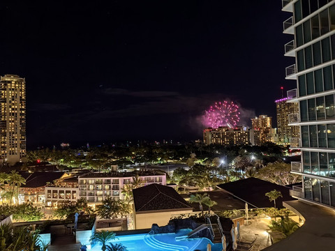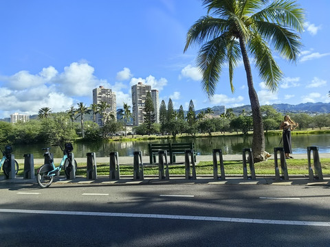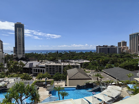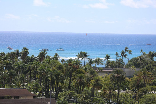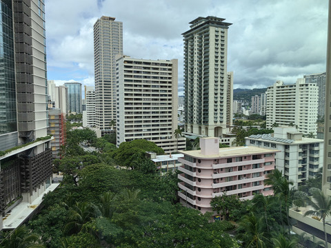 住宿分大岛和欧胡岛两处。大岛本身保持原始状态,有村镇,没什么现代化高楼,有两个机场,科纳Kona机场和希洛Hilo机场。科纳在岛的西部,住宿生活区较为分散,相对酒店多,设施好;希洛在岛的东部,是个小镇子,距火山公园和冒纳凯阿火山比科纳近。可根据自己的需求选择住在哪个地方,我是选择希洛。让孩子定的民宿,体验不错。欧胡岛比较现代,酒店主要集中在威基基海滩附近,各式高楼林立。酒店依威基基海滩排开,有的紧邻海滩,有的靠里临街,总的来说,可选择性强。几乎所有酒店都另收存车费,每晚40-60美元不等。在booking或携程定酒店,一般还注明,到酒店会收取其他如度假村费、存车费等费用。我在携程定的是丽思卡尔顿公寓式酒店,到酒店后刷信用卡1000美元定金(200美元一晚),最后结算时只收了每晚50美元存车费。酒店距海滩不到一公里,楼下有超市,紧邻卡拉卡瓦大道(商业街),价格相对贵些,但服务挺好。大家可根据自己的喜好选择。