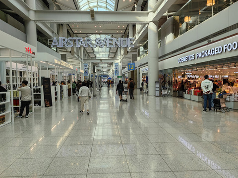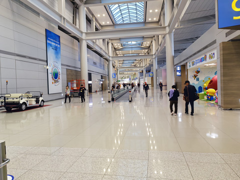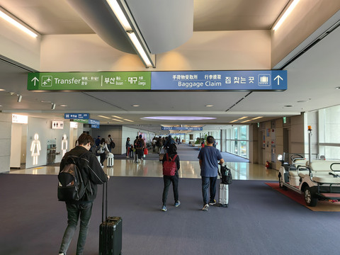 按时登机乘OZ332航班,首都机场T3—仁川机场T1,10:40—13:50(2h10m),实际是11:02起飞,13:32(当地时间)到达。一路上,白云朵朵,下面一片蔚蓝。下飞机后,因为是转机,跟着Transfer绿色指示牌(有中文显示)一路前行,来到安检处安检后,到达T1航站楼的候机长廊(3楼)。因为再次登机也在T1航站楼,就无需转其他航站楼(网上有关于转机不同航站楼的文章)。
