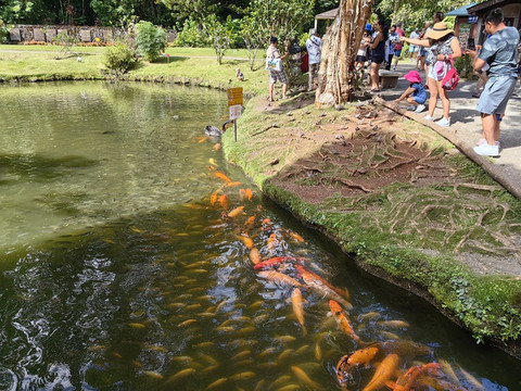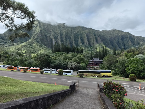 平等院The Byodo-In Temple,又叫神庙谷Valley of the Temples,位于柯劳山脉翠绿的山谷中,是许多夏威夷人的安息之处。这是一座日本佛寺,Byodo-In译为“平等院”。佛寺建于1968年,主要是为纪念夏威夷的第一批日本移民登岛一百周年而建。寺院的风格是仿制日本京都府佛寺,整个佛寺从上到下没有一颗钉子,设计完美。