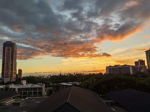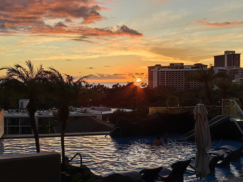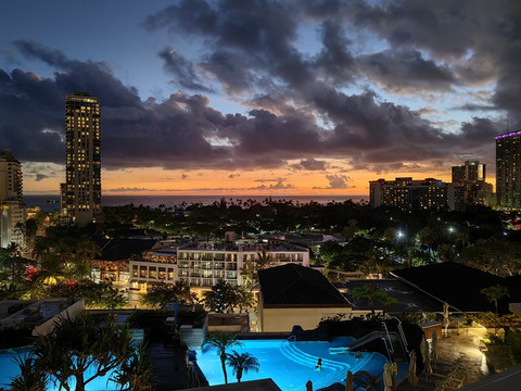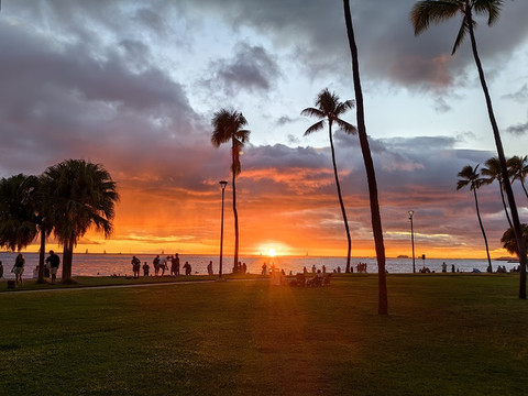 娱乐项目结束后,已接近12点,我们返回酒店,本打算下午去普吾瓦拉卡州立公园Puu Ualakea state Park(可远眺檀香山高楼及日落),观赏风景,因为有些累了,就在酒店休息,晚上还是海滩观日落,逛商业街、用晚餐。