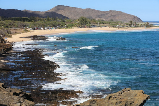 恐龙湾自然保护区Hanauma Bay Nature Prese,位于欧胡岛的东南海岸,是一座死火山,有3万多年的历史,因受海水侵蚀等原因,海水进入火山口内最终形成了如今的海湾,浮潜胜地。网上说,门票:12美元/人,停车场3美元。6:45-13:30开门。