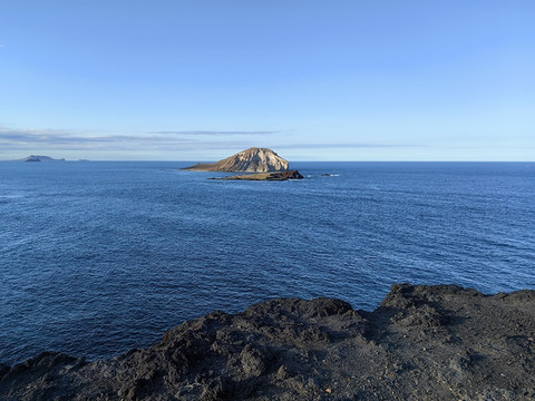 回主路Kalanianaole Hwy后,前行不远,是玛卡普吾观景台Makapuu Lookout,停车场挺大,免费。可以看见海里的两个无人小岛屿,小的个叫Kaohikaipu Island,大的个叫Manana Island,也叫兔子岛,岛的外形很像兔子的头。观景台的这个停车场对停车有限时。