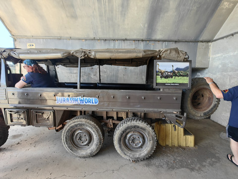 古兰尼牧场举办各种各样的娱乐项目供游客选择。项目很多,有骑马、ATV之旅(四轮摩托)、电影之旅(小卡车、大巴车)、海洋之旅等等,我们购买的项目是Jurassic Adventure Tour,我翻译成“侏罗纪冒险旅行”,时长2.5小时,9:20开始,11:50结束。就是乘坐敞篷小卡车游览,到侏罗纪有关的拍摄地参观拍照。