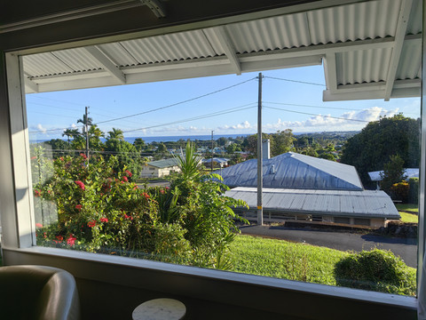 夏威夷虽处热带,但气候宜人,只是很晒。希洛的道路多是单车道,丘陵地带,路面略有起伏,少有自行车之类车辆,路况非常好。虽然初次在美国开车,有点紧张,但一路跟着导航,看着地面线路指示,还是顺利到达民宿。