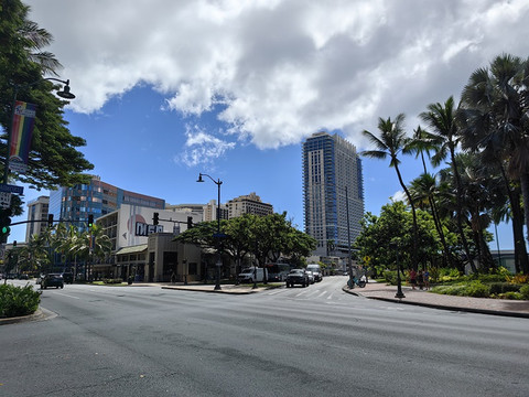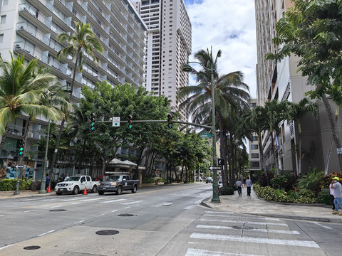 卡拉卡瓦大道Kalakaua Avenue是檀香山主要的商业街,各类名品店、特色商店、DFS免税店,以及豪华酒店都分布在这条街。