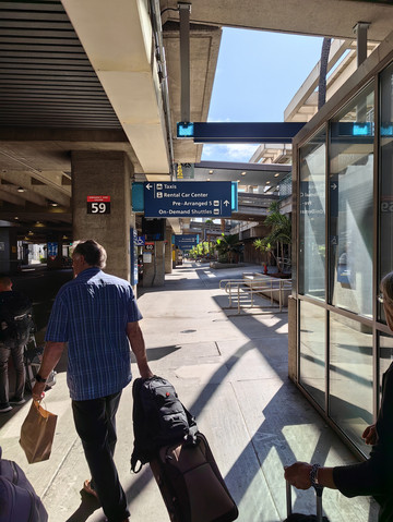 到火奴鲁鲁机场后,乘坐大巴到入关处。此前,在网上看见文章说夏威夷入境用机器自主申报,这回是大家排队走人工通道。回答几个问题,如待多少天,住宿酒店名称,提供了住宿确认单和往返机票确认单,后面又问,听不懂了,他拿出一张纸上面有中文,原来是是否带违禁物品之类,告诉他:NO,就顺利过关。我看前面的人都录指纹了,也没让我录。整个过程大约1小时之内。