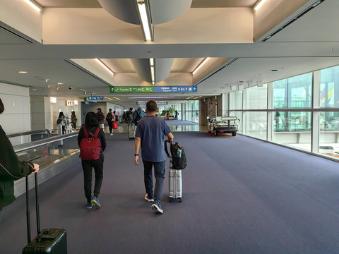 到一楼领取行李,行李已经被工作人员从行李盘上拿下来,与其它行李排成一排。下午要乘坐飞机去大岛,是在T1,很幸运,我们取行李的大厅是在T2最接近T1的地方,目测也就100多米,距离远的大约走个十来分钟,据说有摆渡大巴。T1的一楼也是到达领取行李区,直接上二楼,休息等待UA363航班,12点半和孩子汇合,办理机票和托运。