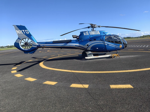早晨不到七点出发,几公里路程,7点稍过到达蓝色夏威夷直升机机场,机场就在希洛机场内。办理手续,每个人都要称重,按重量分配座位。一共两个家庭参加这次飞行,一起观看影片,还特意放映的中文字幕,在讲解注意事项并发给每人急救包后排队依次登机。我们参加的是乘直升机鸟瞰火山、热带雨林,游览时长50分钟。