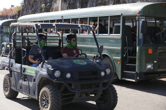 巴士的起点站及终点站为游客中心, 接驳巴士以循环方式运行,没有固定行车时间,大约7-15分钟接驳车会来回接送游客往返各个纪念馆。