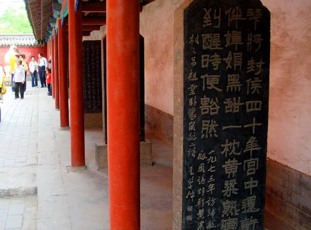 卢生殿前有两块石碑令人寻味。“梅碑”是邯郸进士王润泉所作梅花,背面是其亲笔题诗“梦醒黄梁方悟道,心同明月可寻梅”,送与了卢生。“梦”字碑,梦字中间镂空,绕内刻有一道藏头露尾诗,初看难解,细细琢磨,方悟其意。原是卢生一梦简述。