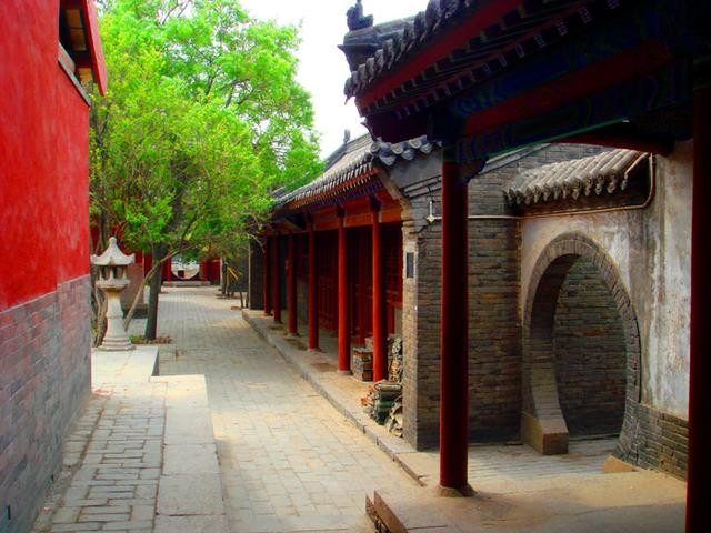 车队抵达这里时,车友们首先看到的是吕仙祠古朴的红色山门。现存的这座古观,坐北朝南而大门却西向古邯郸道,门前的“双龙戏珠”琉璃照壁与山门上方的“邯郸古观”大匾相映成辉。