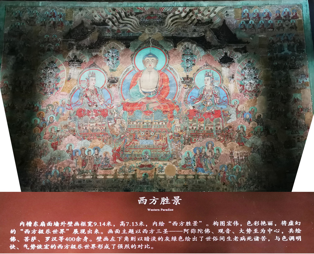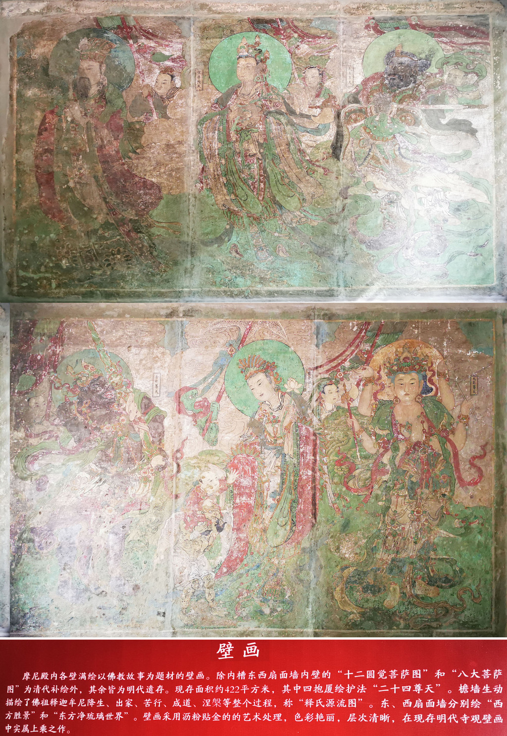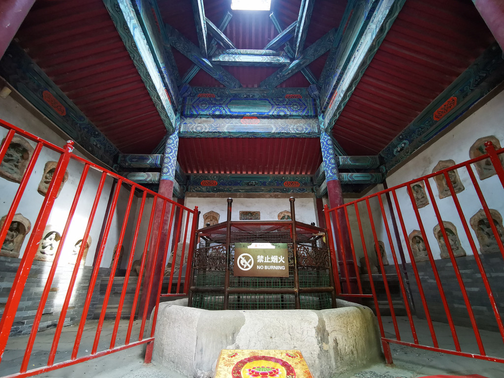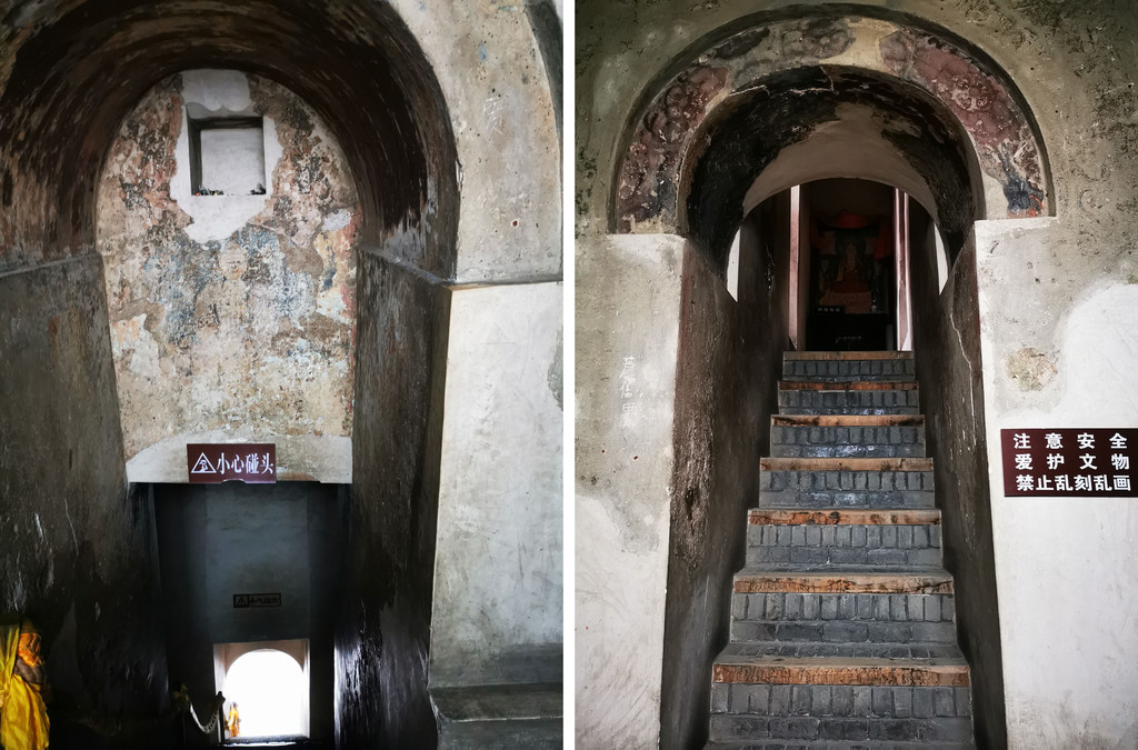 摩尼殿内光线昏暗,不仔细看根本不知道墙上有壁画,且是那么的色彩艳丽