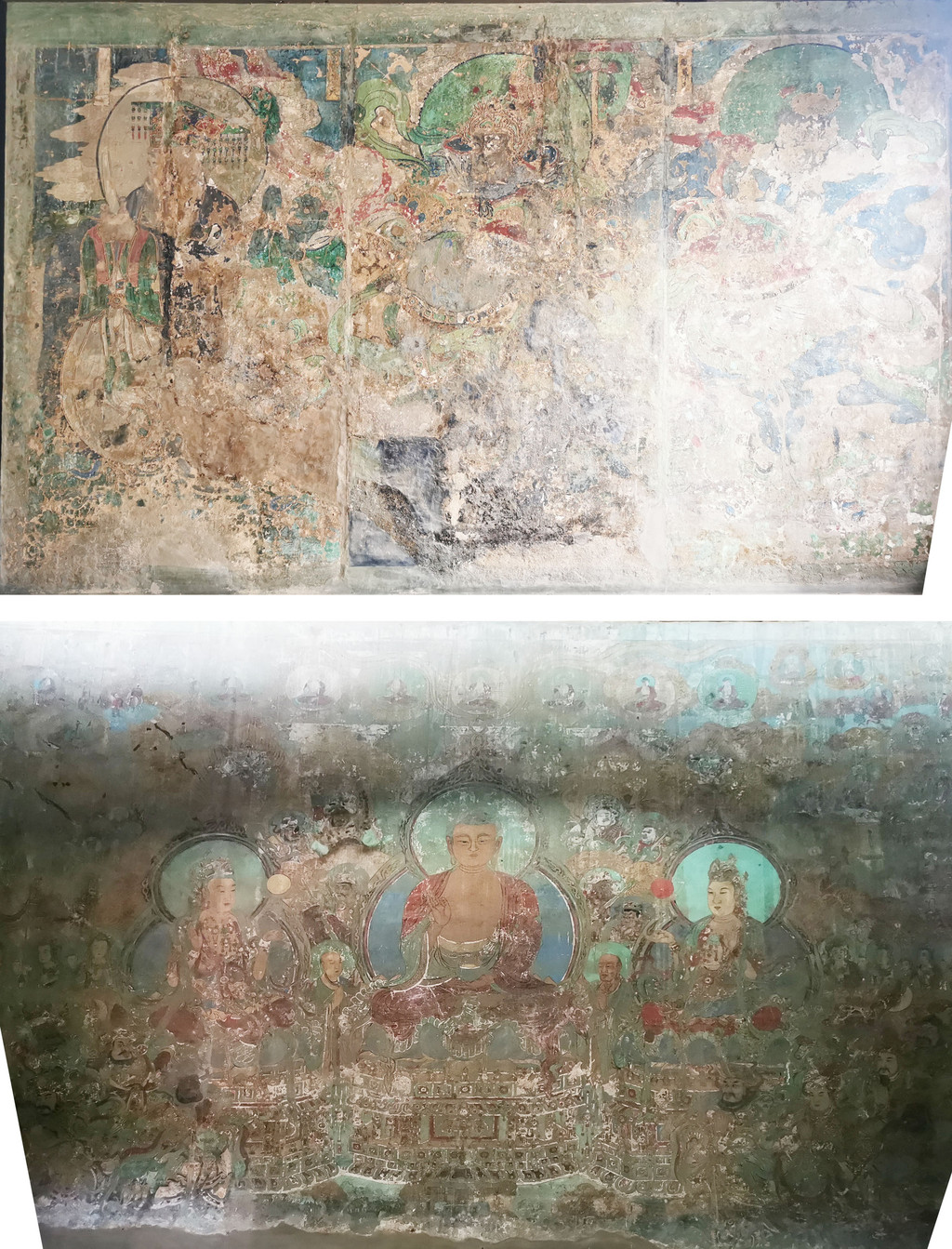 还有几幅壁画实在是光线太暗,加上磨损厉害,看不出画面