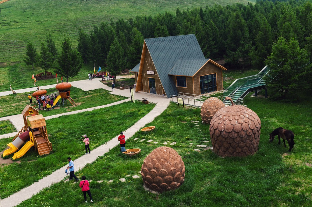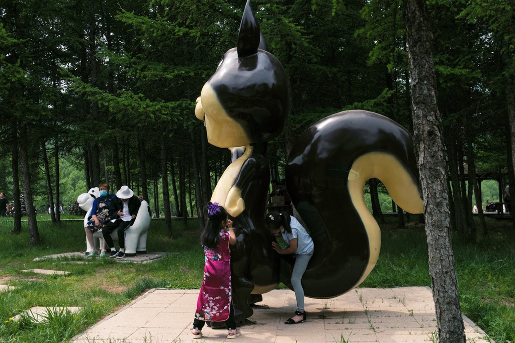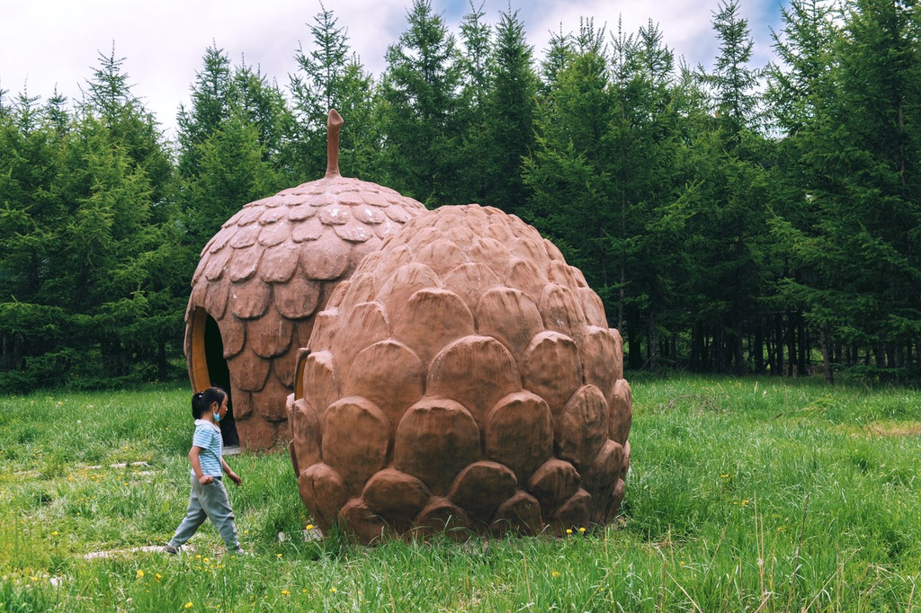 绕着栈道向前,湿润的空气带着花香环绕在整个鼻腔,想必内心也会被湖的美所打动。我们来到一处充满童趣的庄园,这儿有个可爱的名字——松鼠部落。园内的建筑颇有特色,一只比人高大的松鼠雕塑呆萌地站在树林丛中,小朋友们在几个松果造型的小屋中嬉戏打闹,园子中间还有一些娱乐设施,带着小孩来玩儿也很方便呢。