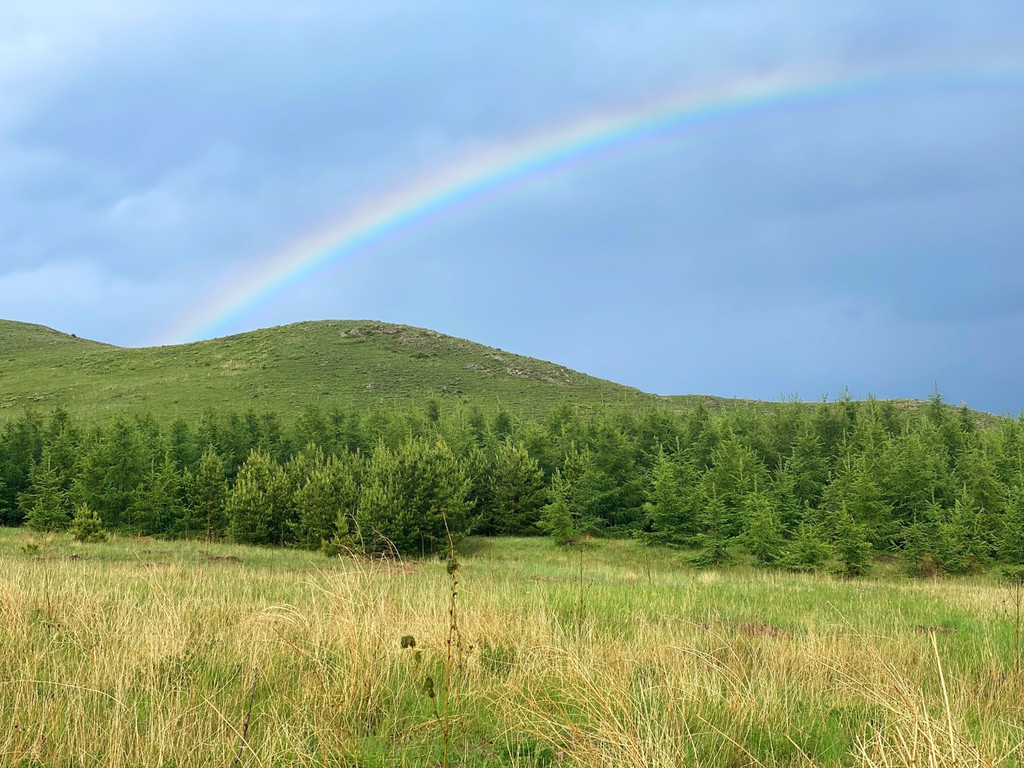 有幸跟朋友们在这里看到了雨过天晴的彩虹,映红天际的晚霞,在风车下吹着晚风,站着吃烤全羊喝啤酒,每一幕现在回想起来都充满了欢声笑语,令人难忘。