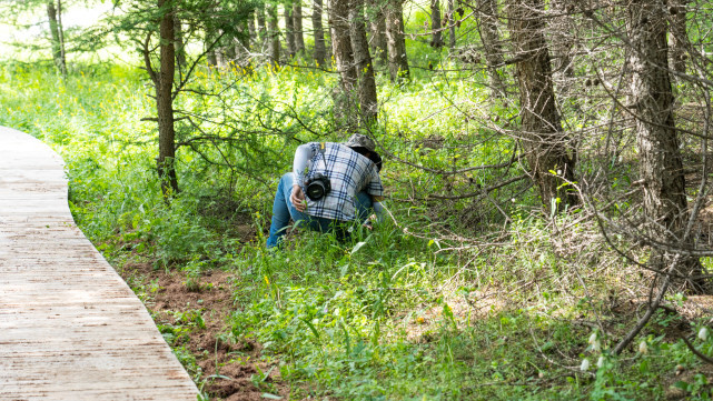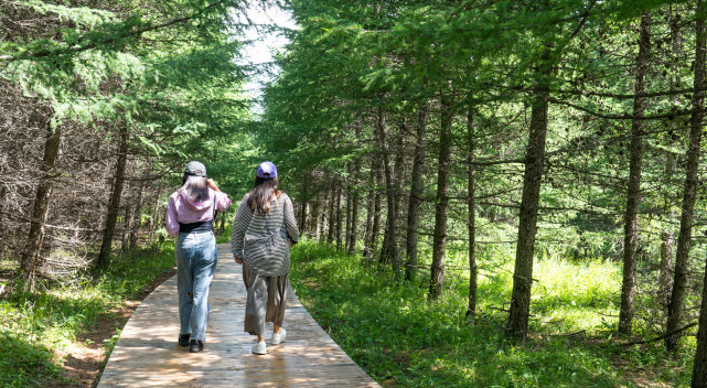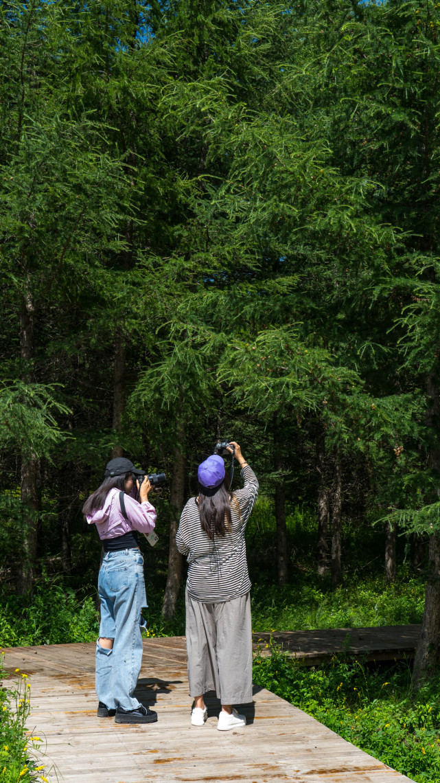 大概我们是来的最早的,景区游客还少。沿着木栈道行进,耳边只闻清脆鸟鸣,恍然这片山林都是我们的私人领地。