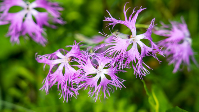 瞿麦花长成细细的流苏状,一般有5朵花瓣,生长在山野或河边,也被称为"常夏、日暮草、抚子花“,花语为”一直爱我”。