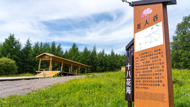 进入美人谷,有条长长的环形木栈道,路边便是满眼的鲜花与绿树,游客同时走进一个天然大花园和氧吧。