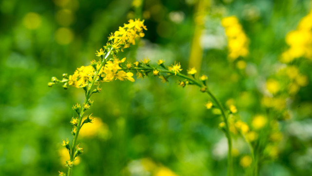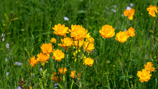 金莲花是草原上著名的花,每到盛夏七月,漫山遍野金莲花点缀在草原上,形成独特景观,霎是妩媚。金莲花除了颜色好看,还可药用,晒干了泡水喝有清热解暑功效。
