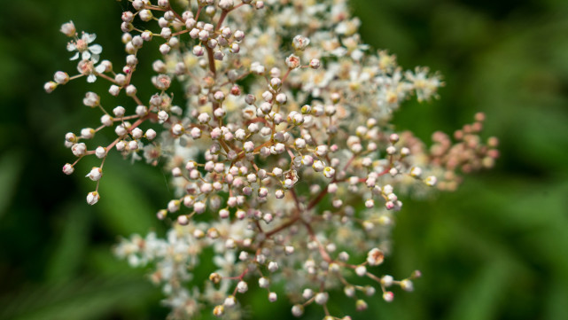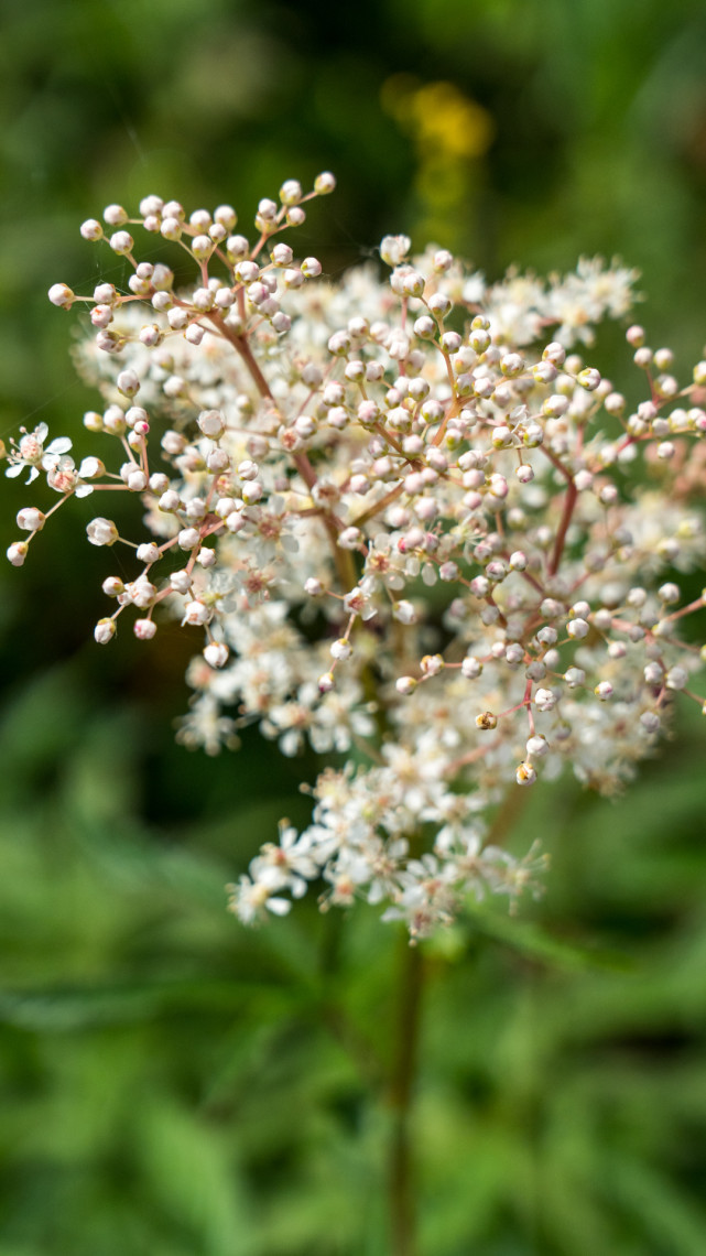 蚊子草花多而小,花开伞状,花瓣白色,花朵密集堆砌在一起,十分漂亮。十八花海里有许多这种小花,难怪行走林中少见蚊子,如其名,大概它有驱蚊作用吧。