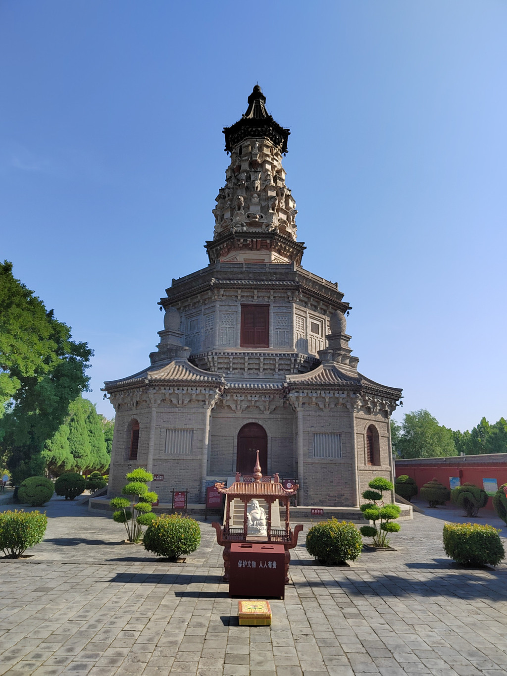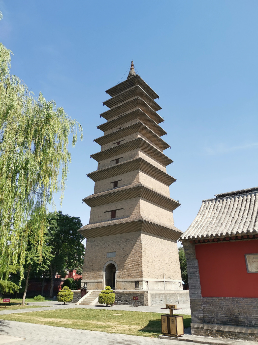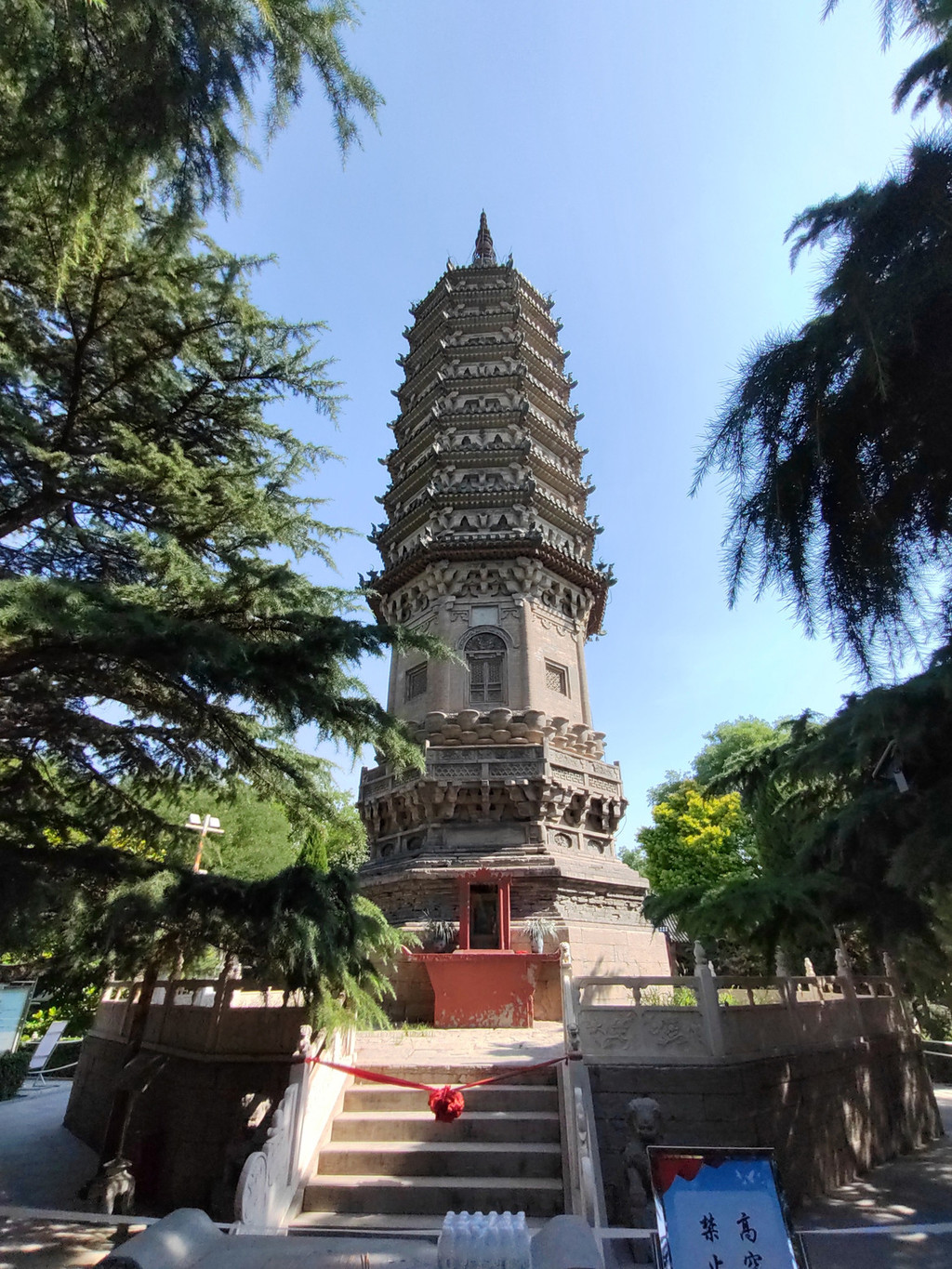 第三天(天气预报还是40度😅)早起发现昨晚热闹非凡的燕赵南大街上居然没有早点,于是决定先去南大门附近的广惠寺看华塔,华塔始建于唐贞元年间,塔身四层,各有其独到之处。华塔整体造型特异,古朴端正,十分少见,白天看又是不同于昨晚的风采。
