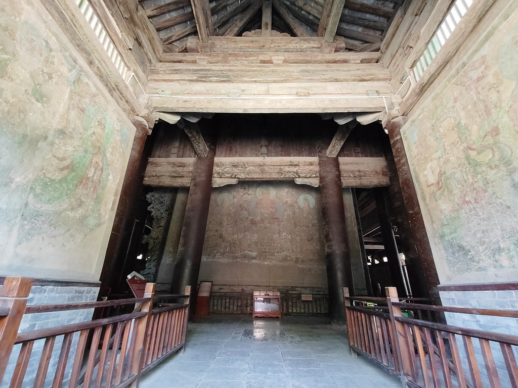 往回走,慈氏阁与转轮藏阁大体相似,其榐墙一周柱子的做法是我国国内保存宋代建筑中的孤例。