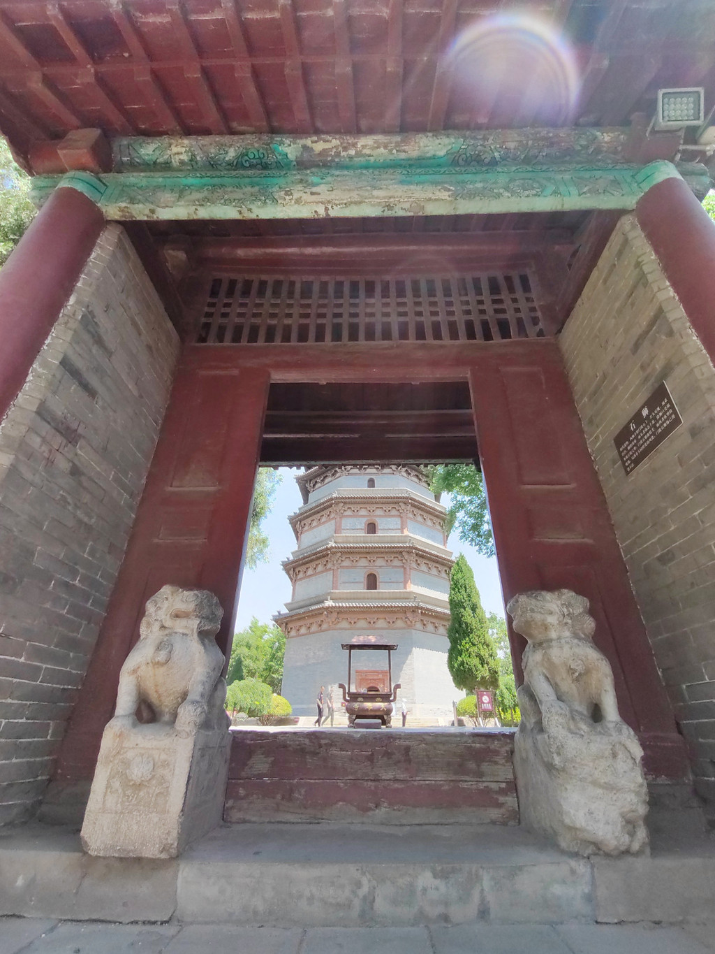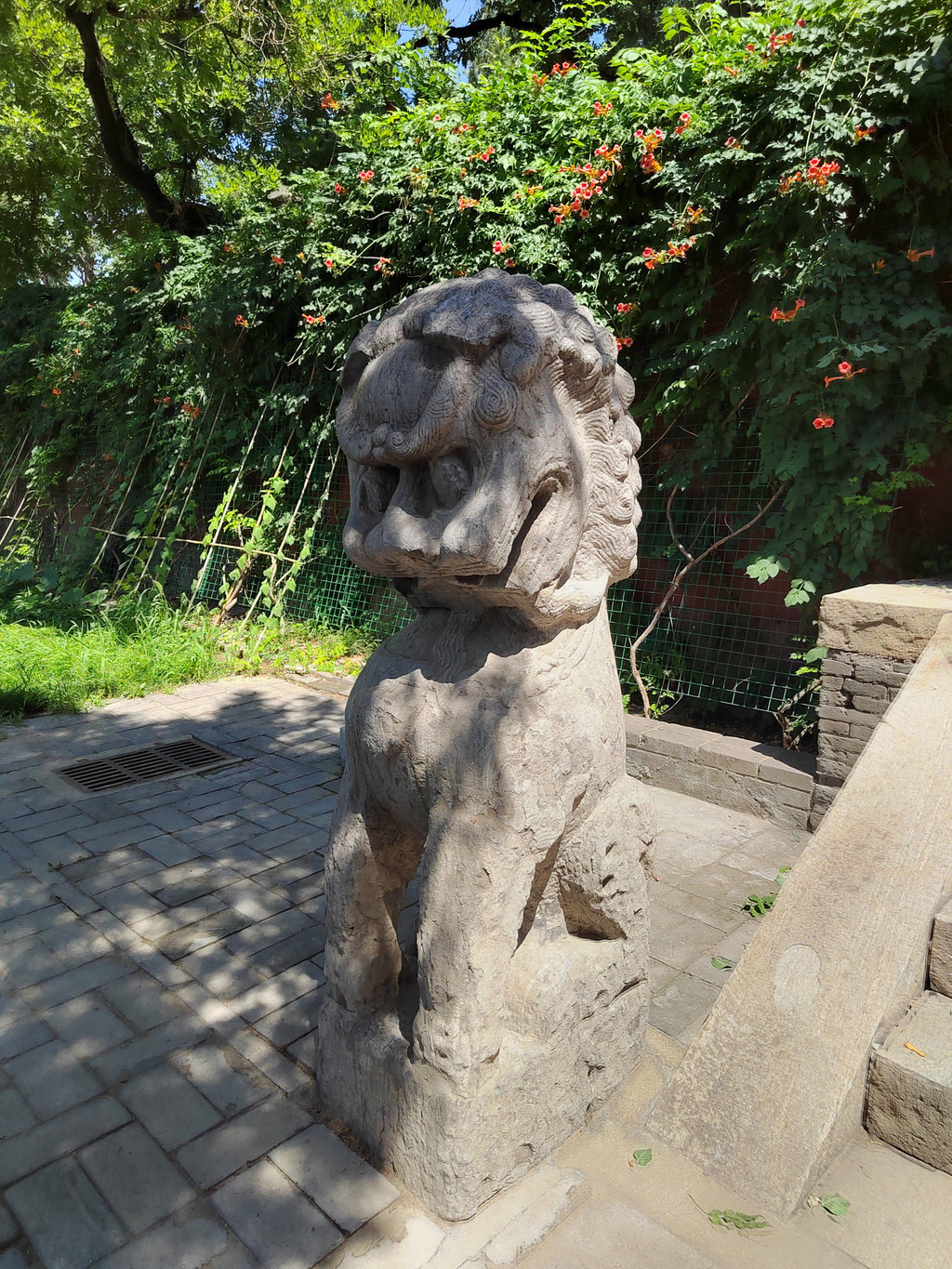 最后来到天宁寺的凌霄塔,为九级砖木混合结构的楼阁式塔,是我国现存实物中唯一的一种结构形式,门边的石狮子表情生动,感觉也是件古物。