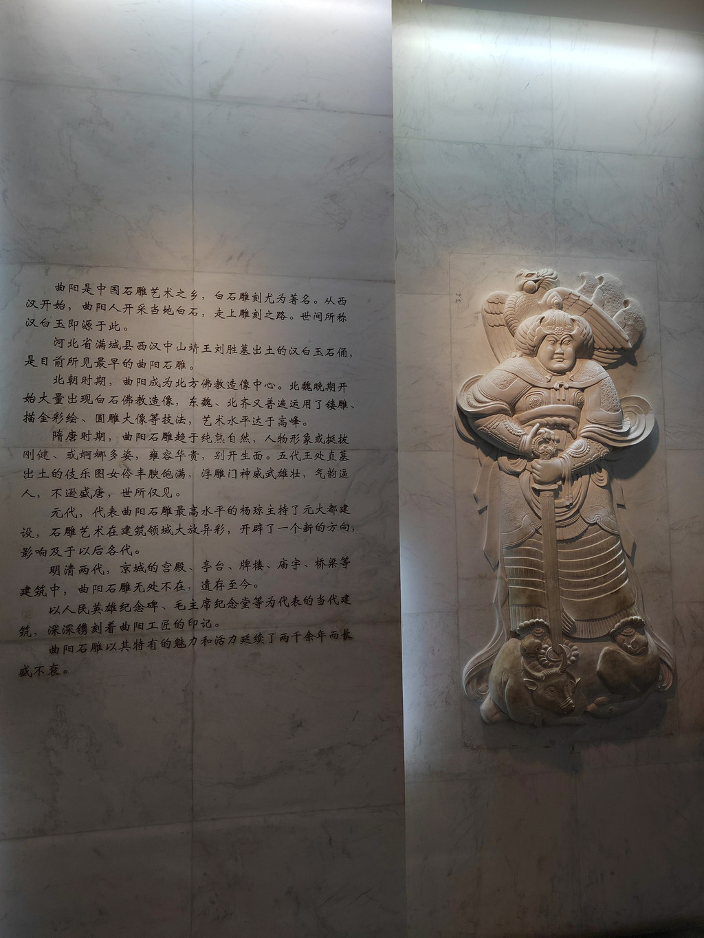 曲阳是我国石雕艺术之乡,自汉以来直到人民英雄纪念碑等当代建筑中都能看到曲阳工匠的印记。其中的五代时期彩绘散乐浮雕,众乐俑形态生动、凹凸有致,体现了盛唐时期的艺术风格,十分少见。