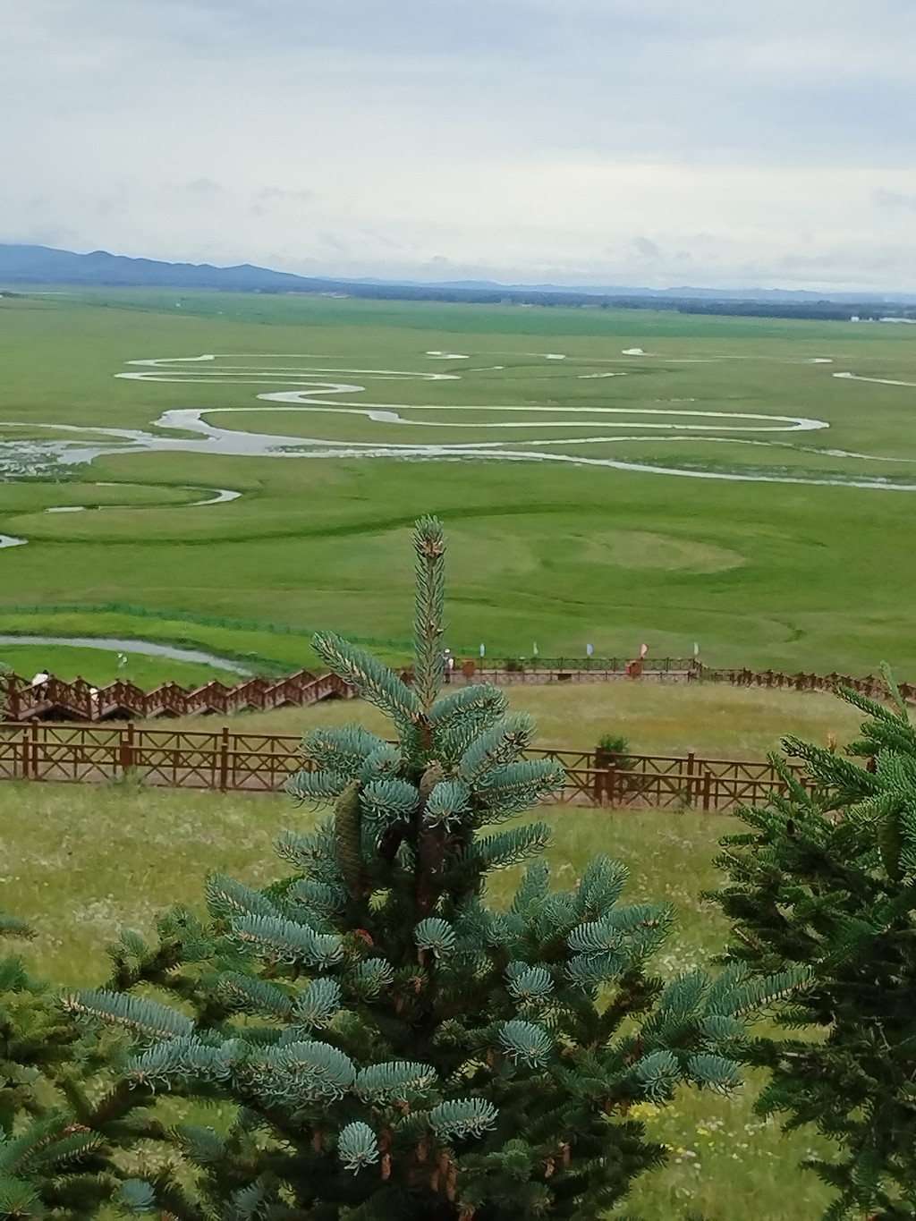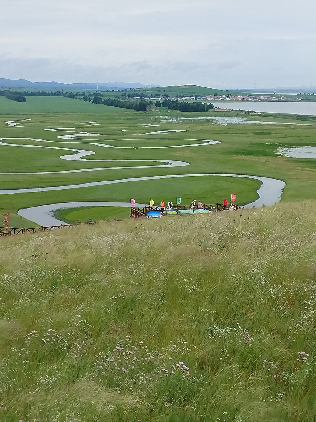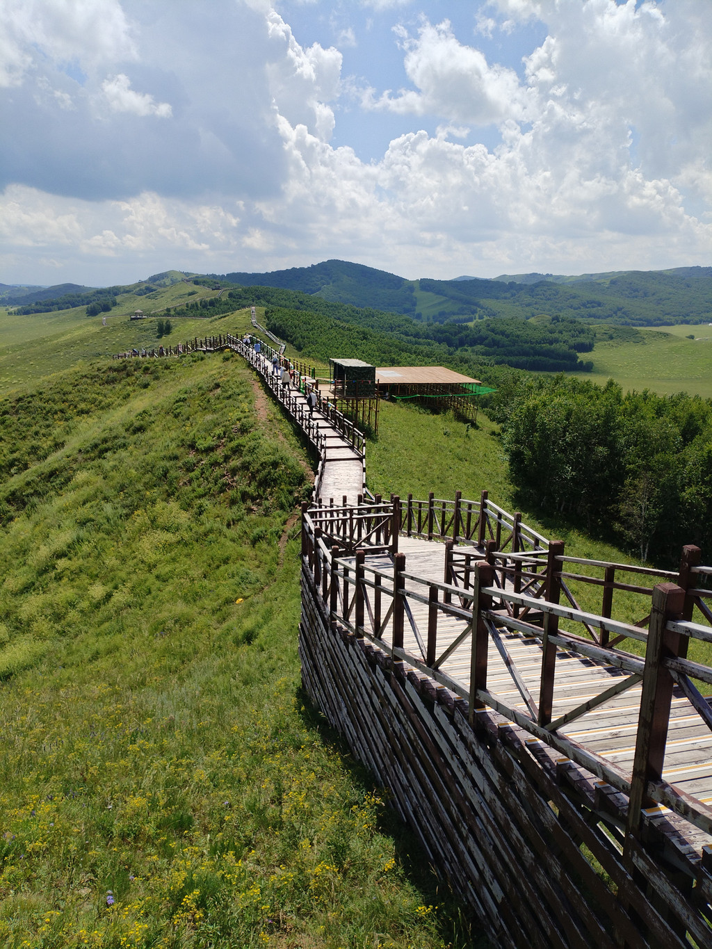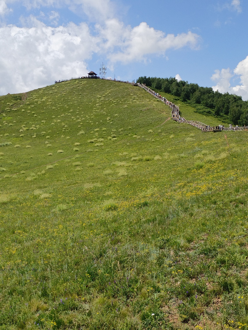 山叫转佛山,不大也不高,是景区的核心。我们沿着栈道很快就走到了山顶。山上修建了多条栈道,可以环绕整座山游玩。山上的牧草很高,中间夹杂着很多野花。