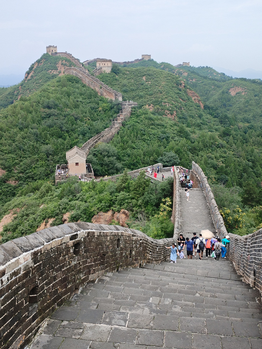 我们第二次登上的是承德滦平金山岭长城。央视每天清晨播放国歌时,电视背景画面中的万里长城,就是金山岭长城。它始建于明洪武元年(公元1368年),由明朝开国元勋徐达主持修建。隆庆元年(公元1567年),时任蓟镇总兵官的抗倭名将戚继光,对徐达当年所建长城进行大规模重建和扩建,使之成为坚固的防御工事,拱卫着京畿重地的安全。金山岭长城是明长城中保存最为完整的一段,以视野开阔、敌楼密集、景观奇特、建筑艺术精美、军事防御体系健全而闻名于世,享有“万里长城,金山独秀”美誉。