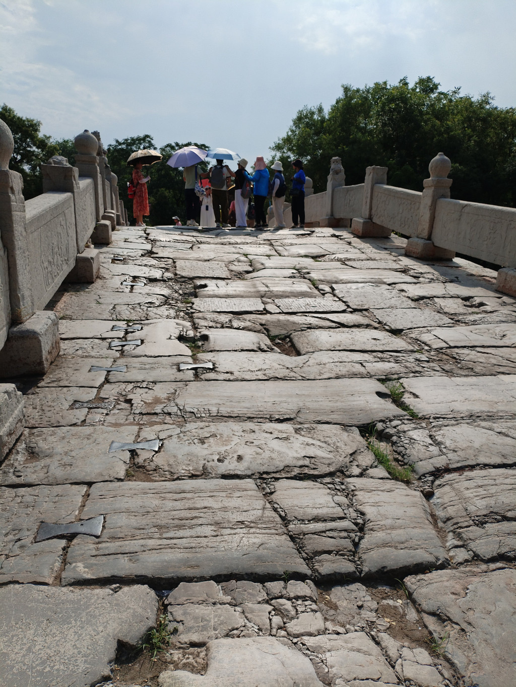 不过,阿李觉得,安济桥(赵州桥)不像是古桥——它被保护得太好了,简直像座刚刚建好的石桥!它的桥面也是青石铺成,但是非常平整,没有弘济桥的塌陷和坑坑洼洼,看不出它有一千四百多年的沧桑历史。阿李不禁感慨:几十年前学习课文《中国石拱桥》,知道河北有座赵州桥时,自己还是满头青丝;几十年后,来到河北,来到久闻大名的赵州桥上,自己已是华发满头;而赵州桥却依然神采依旧,像个一千四百多岁的少年!
