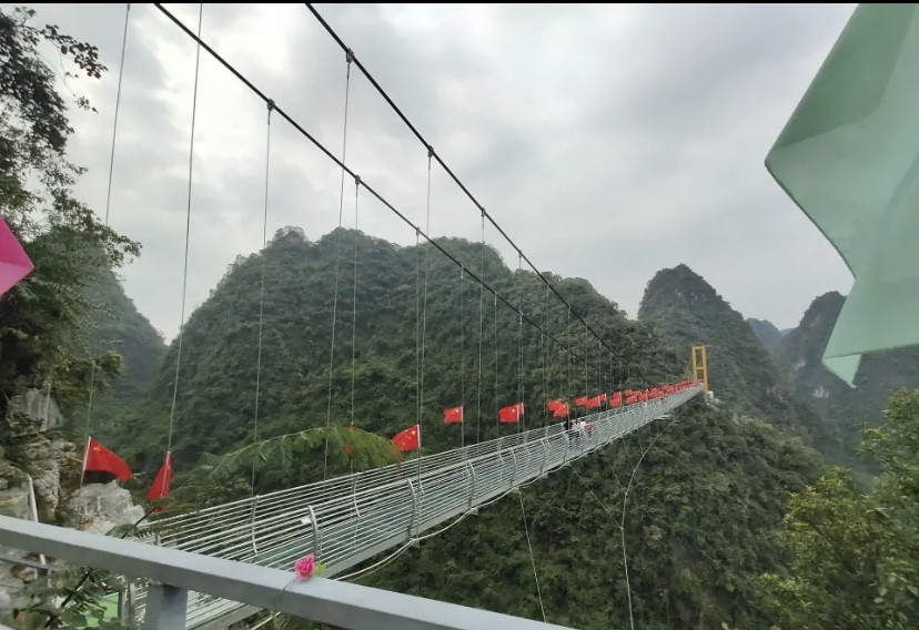 去了溶洞跟玻璃桥,在景点里面吃了特色的长桌宴。