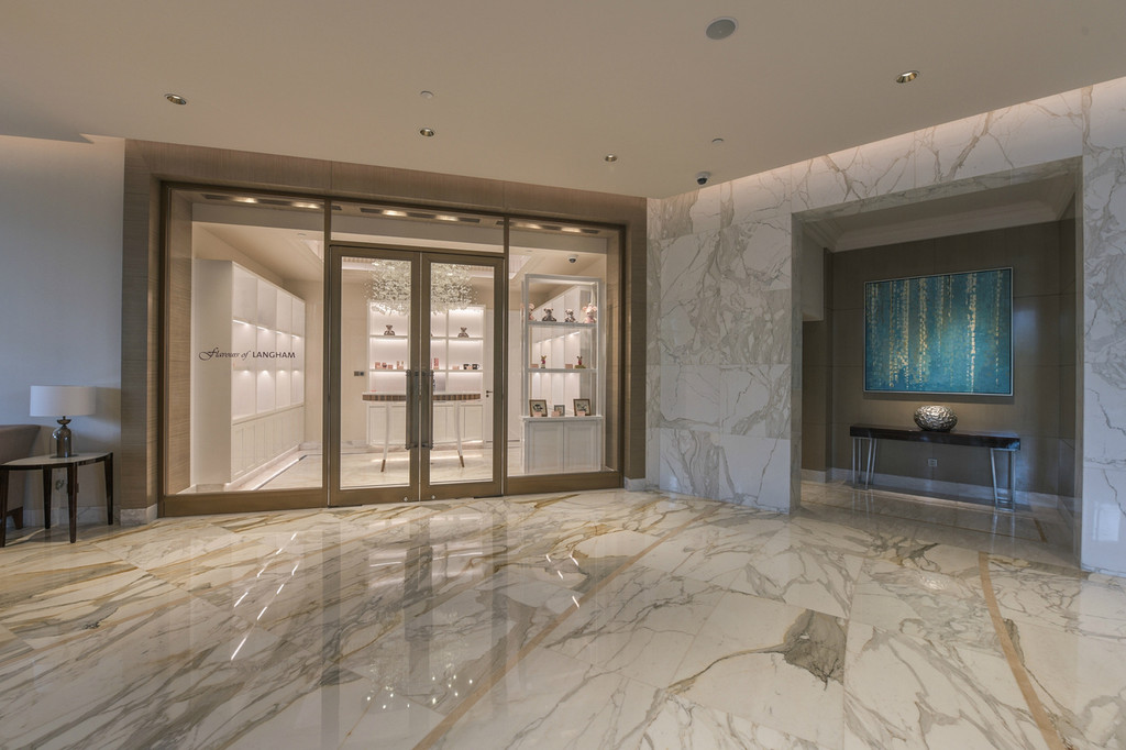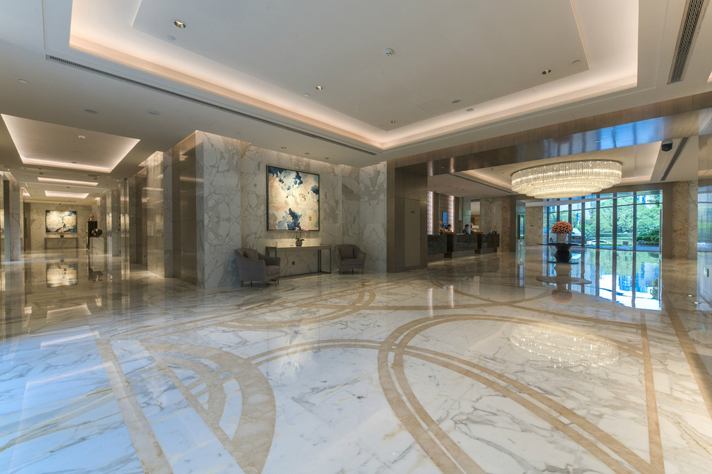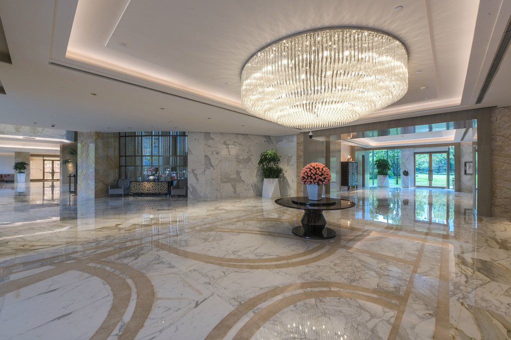 与其他豪华型酒店不同,酒店整体欧洲大理石外部建筑风格融合了东方美学的韵味与英伦时尚的典雅气息,山野君走在门口就被这样的气息驻足不前了。大堂中央的朗廷粉色玫瑰,烂漫优雅的色彩还凝结着大小水滴,让整个区域鲜活生动起来。