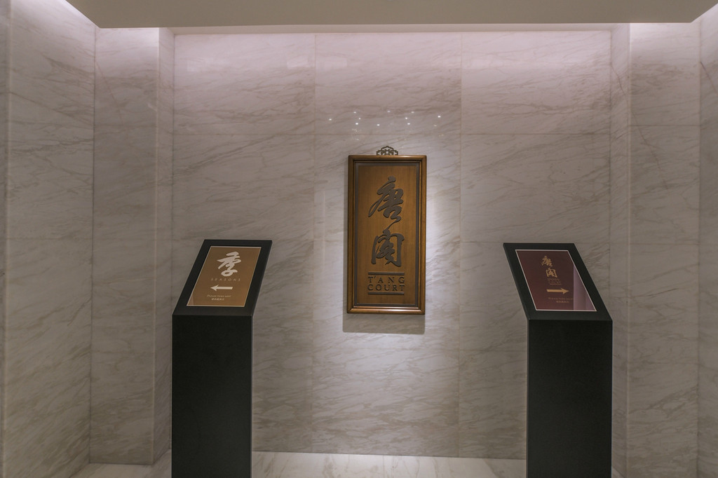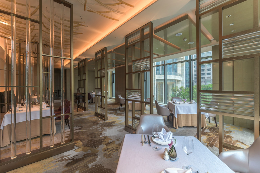 进门两侧就是唐阁的酒窖,非常晶莹剔透,一进门就有种惊艳的视觉冲击。唐阁六间别致典雅的私人餐室分别用著名唐朝诗人的名字命名——太白、乐天、季真、长吉、浪仙和子美,温暖的中性色调,精致装潢尽显唐朝盛世的气派。唐阁的大厅区域,大厅区域用一些隔断隔开错落有致,坐在窗明几净的大厅用餐,还可以看见朗廷酒店一层户外的欧式花园,景色非常清新,用餐的时候心情都会非常好!
