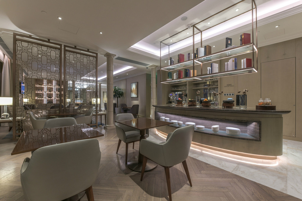 酒店大厅的正中央就是大堂吧廷廊,休闲而小资的环境更进一步的彰显了Stay-Vacation 的理念了,在这里可以让你不心疼的花上半天的时间在这里消磨时光,感觉真的太赞了。大堂吧廷廊超挑高欧洲宫廷穹顶真的是一大亮点,透过整面玻璃幕墙可见英伦户外花园,环境优雅大气,雅致的布艺沙发具有极佳的舒适度,盛载着茶点的银质经典托盘搭配Wedgwood,特别定制款“Langham Rose”朗廷玫瑰图案瓷器茶具精致典雅,一种维多利亚时代的优雅和高贵扑面而来。已经成为合肥城中网红打卡必经之地。山野君在这里享用下午茶休憩半晌,如果是一家人或是和朋友们一起来想必更加惬意。