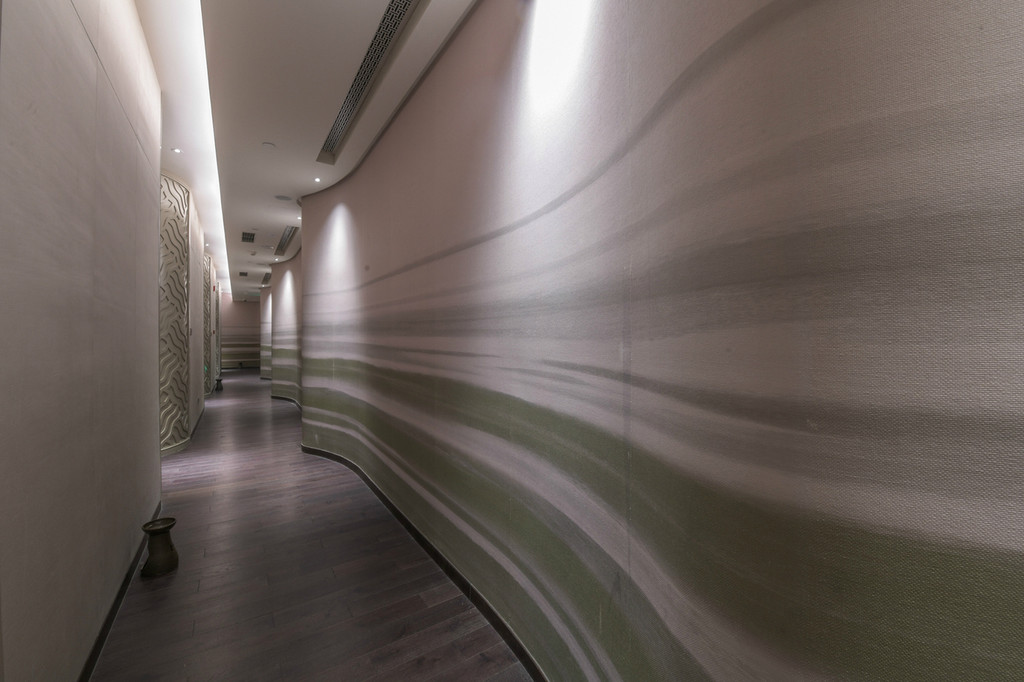 在办理酒店入住时听前台介绍拥有水疗相关配套设施,果然如此。来这里享受一下SPA带来的放松后,你会真正感受到何为宅度假生活了。山野君特别喜欢这种将中国“风水”理念与英伦时尚风完美结合的设计与建造。这是SPA前往休息处的通道,半月形拱门、韵味十足的走道和潺潺水流,居然也能如此的充满艺术性。