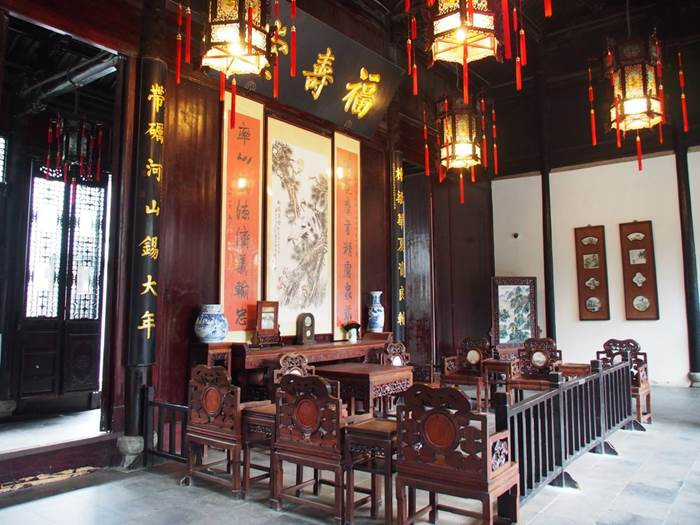 刚进来之后能够看到一个假山,进去后就是中厅,特别敞亮的一个地方,高有9米。现在基本上看不到如此挑高的建筑了啊。
