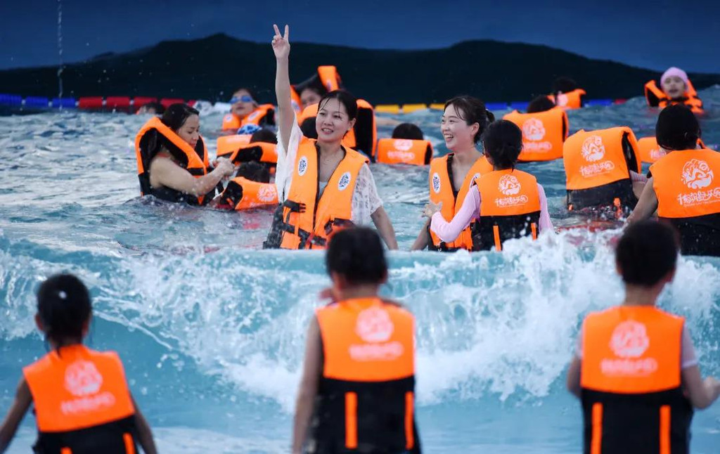 在造浪池里享受冲浪乐趣,体验一次次与海浪搏击的快感。