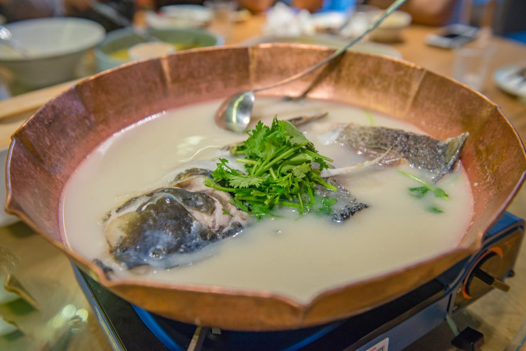 我们选择了宜福春餐厅解决晚餐,都来狮城了怎么能错过千岛湖鱼头汤,老板介绍说这里的鱼是千岛湖的野生鱼,古法烹饪、极具特色,奶白的浓汤,反正我爱了!简直让我欲罢不能,吃了一碗又一碗。
